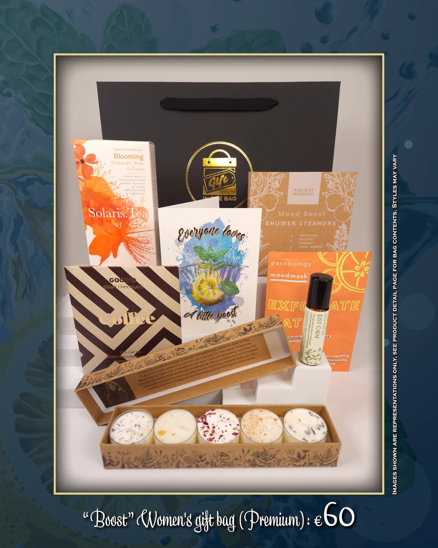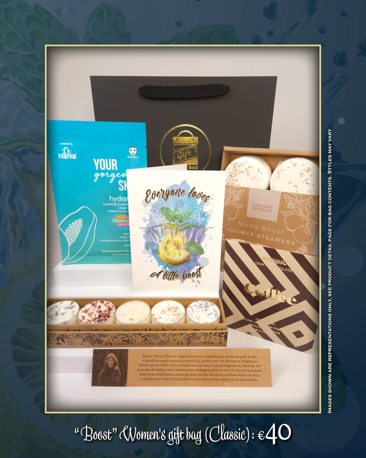 Introducing our "Boost" Women's gift bag. Delivering a burst of freshness and rejuvenation to revive the senses; this is the perfect gift for any woman who needs a lift without slowing down.
