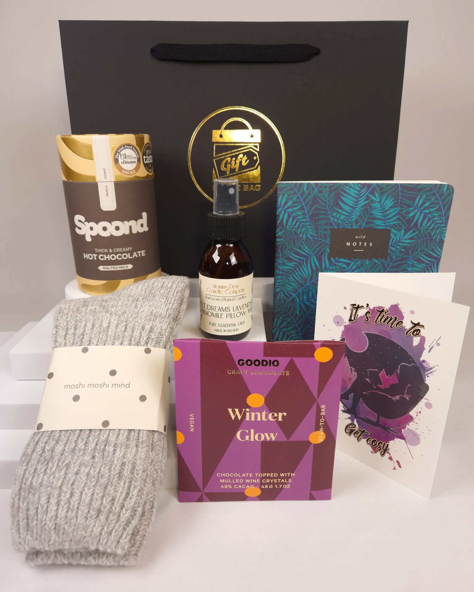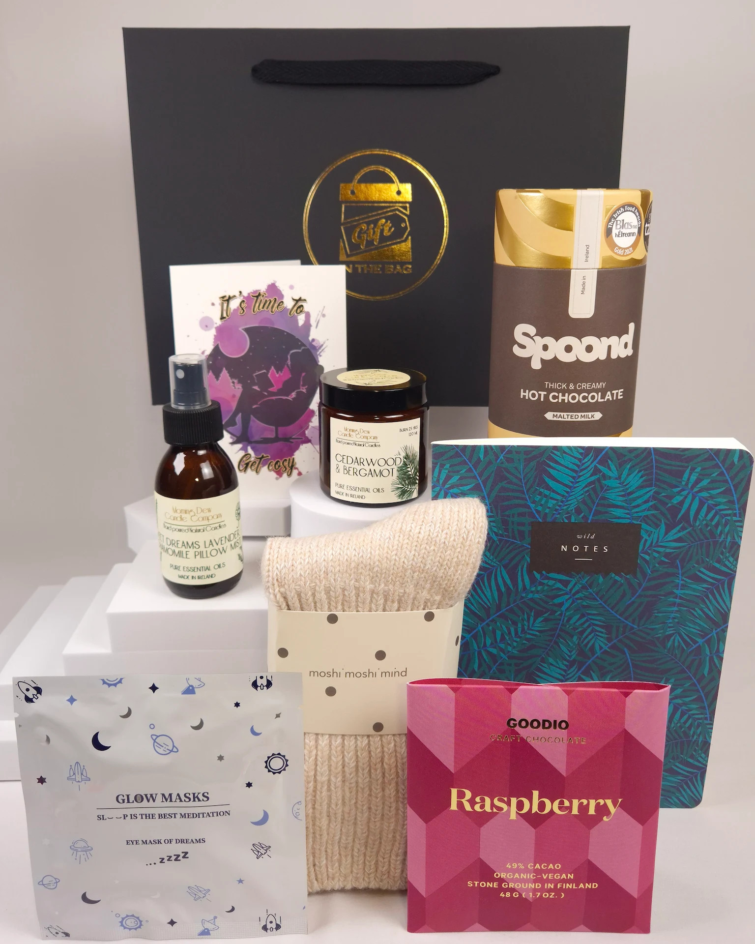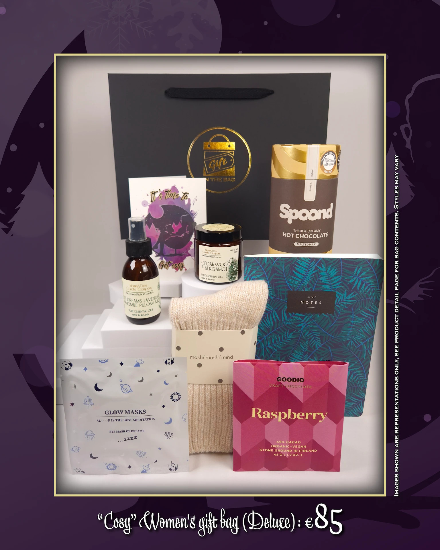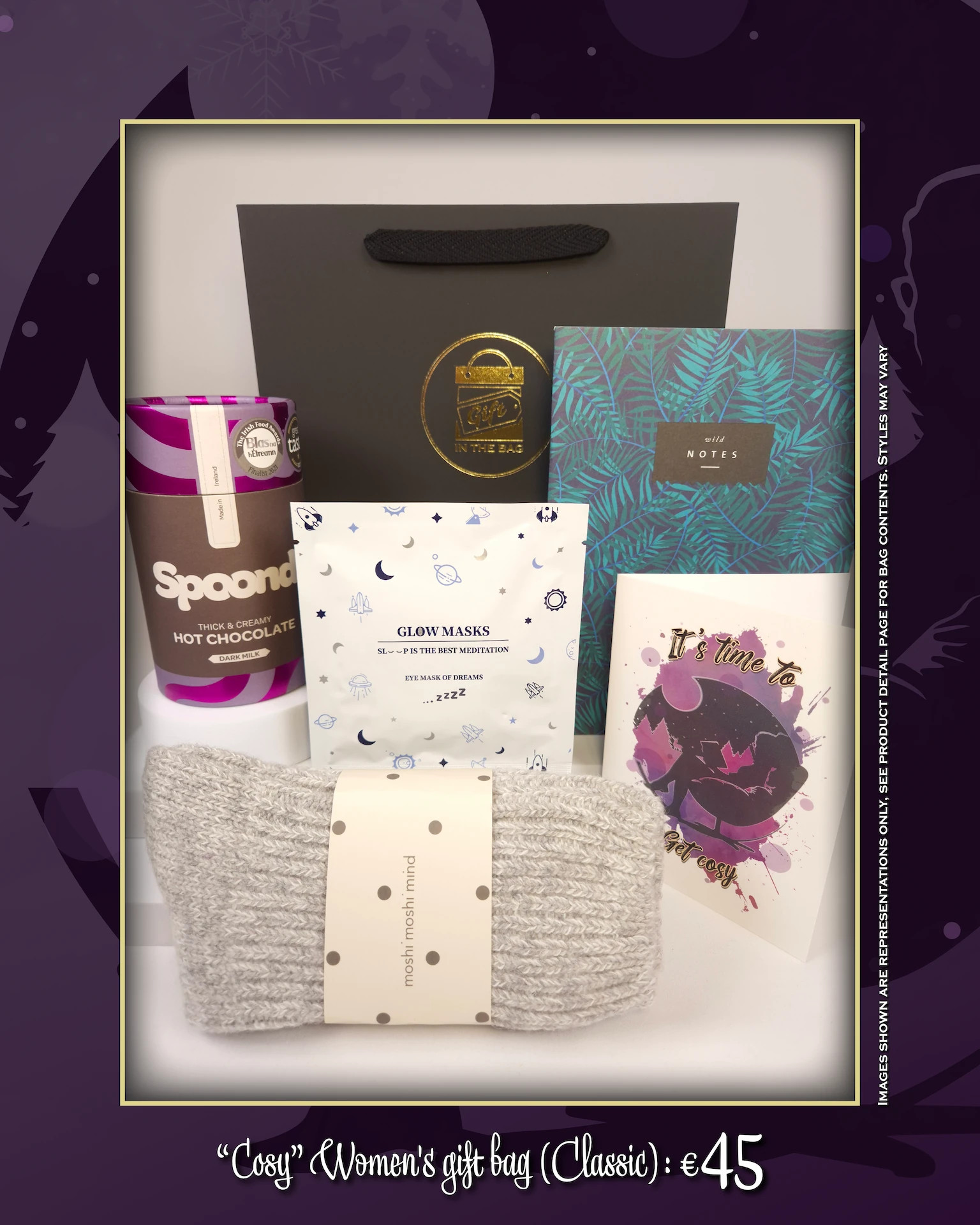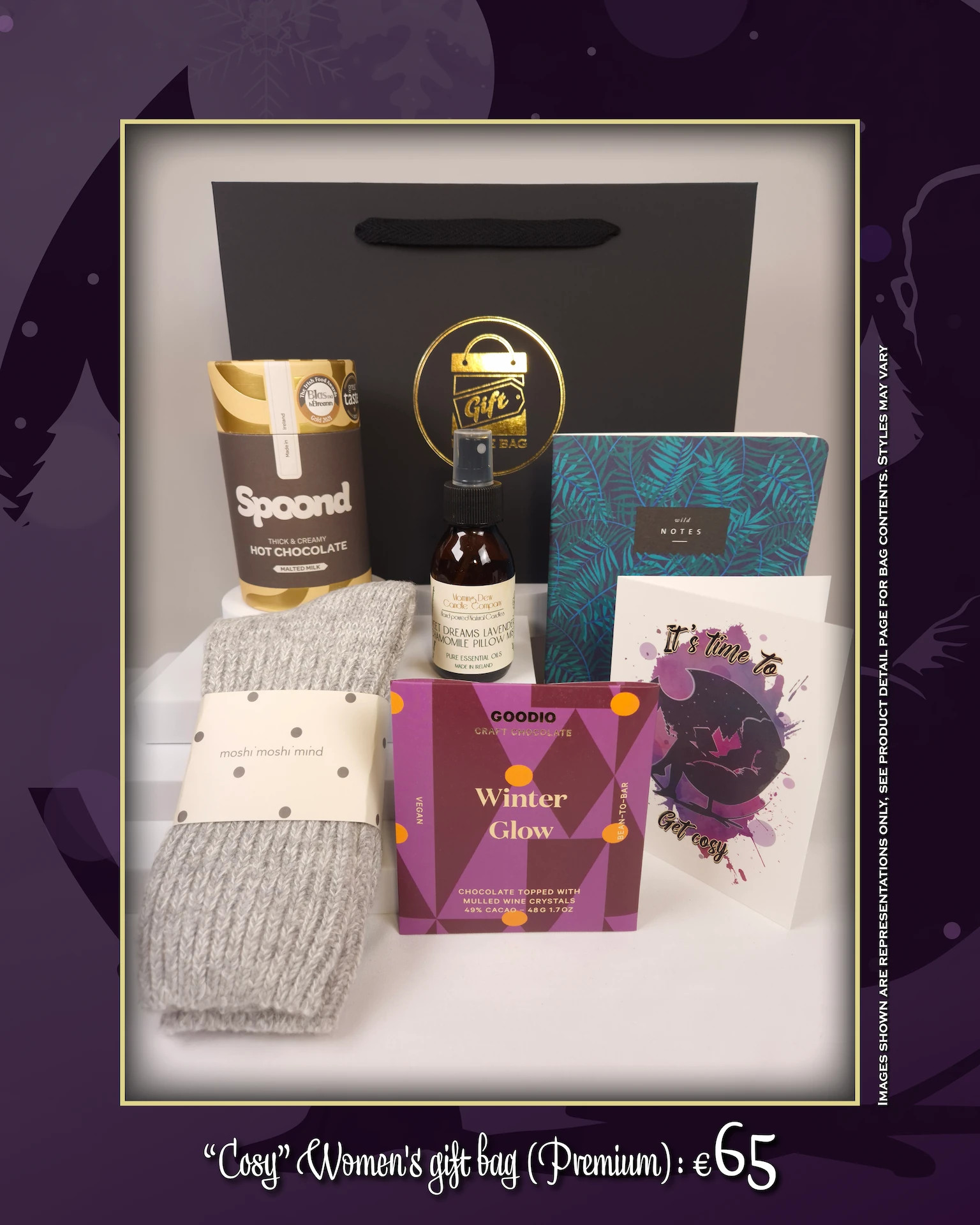 Introducing our "Cosy" Women's gift bag. Offering a warm hug in a bag; this is the perfect gift for any woman who loves to unwind in comfort and style.