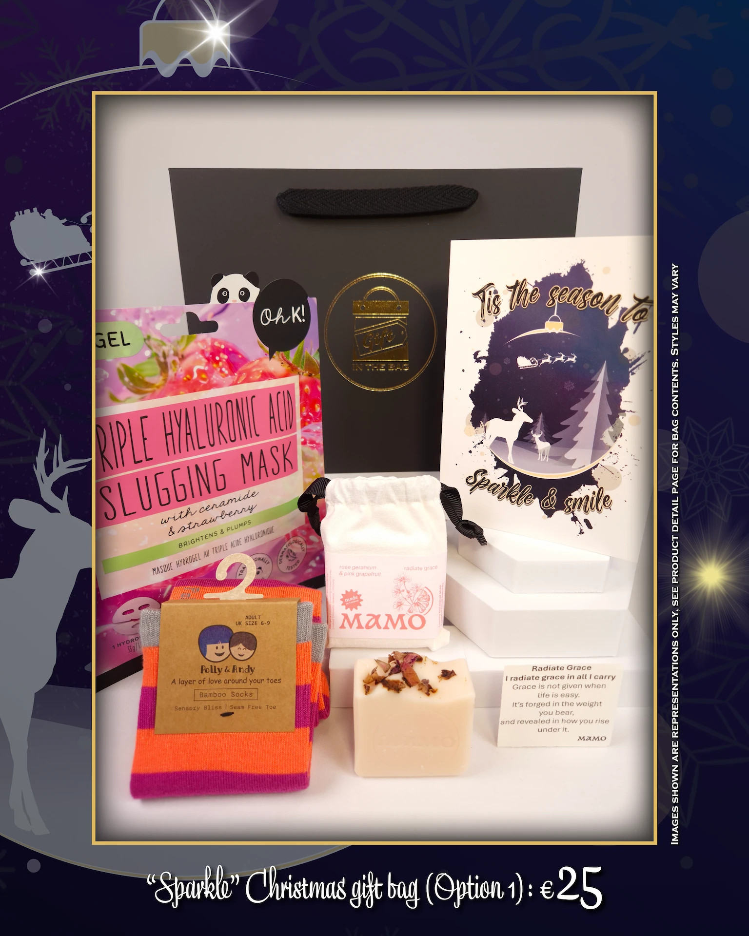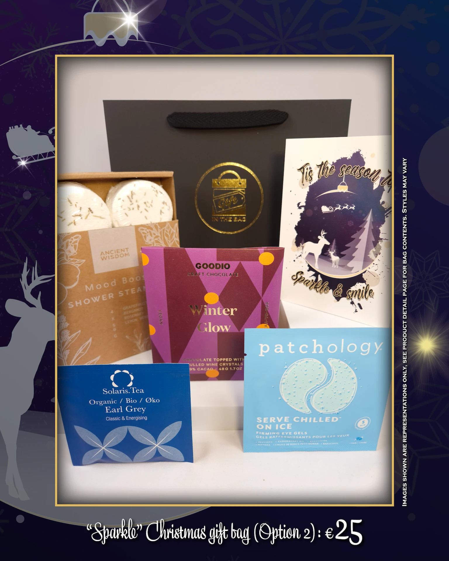 Introducing our "Sparkle" Christmas gift bag. A thoughtful treat, and something a little bit different; this is the perfect gift to add a bit of sparkle and joy to the festive season.